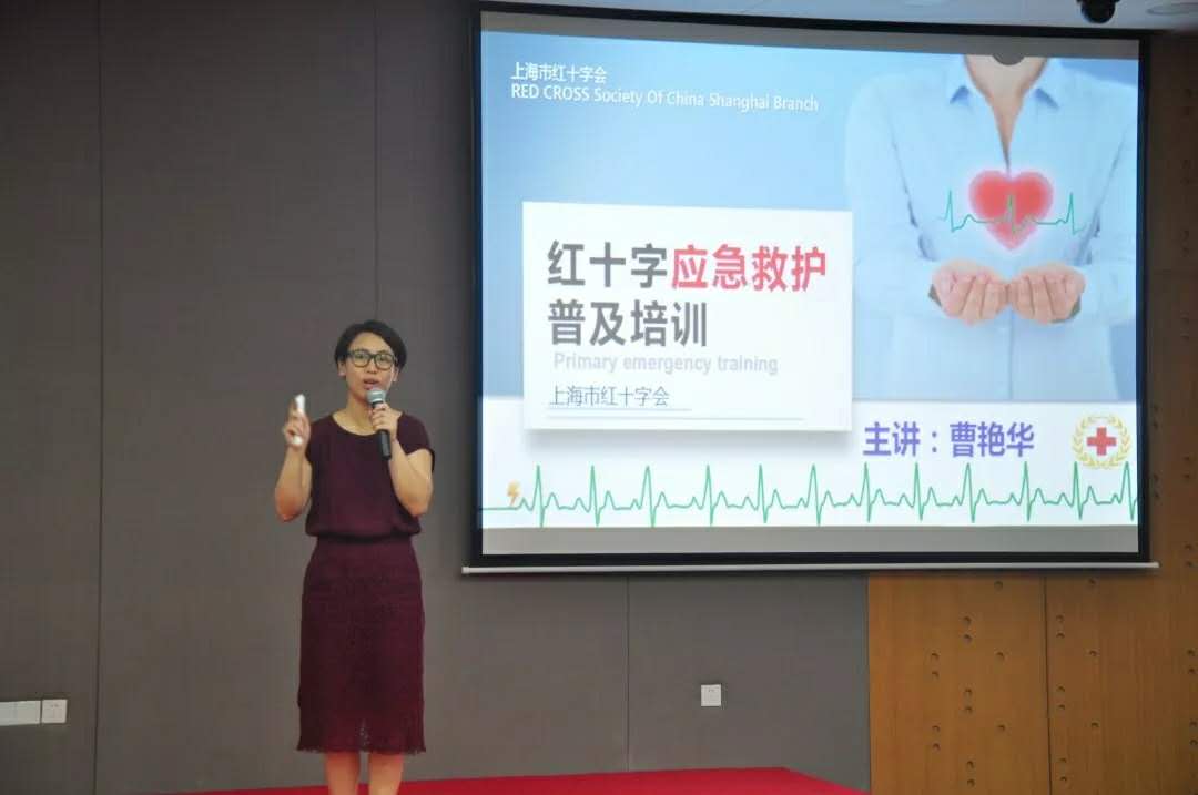 培訓會最后針對進博會期間志愿者們可能遇見的危急情況進行了紅十字急救護培訓。主講老師具體介紹了身體的各個部位發生的常見問題及解決方案,并且手把手指導上臺體驗的志愿者,使志愿者們受益匪淺。