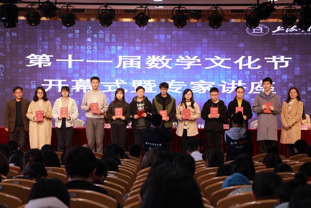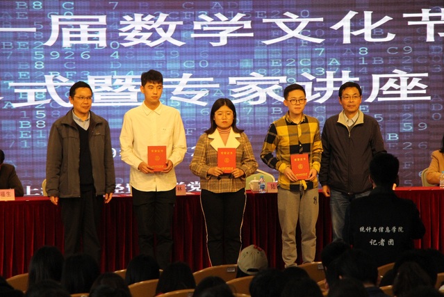 龍江宣讀2018年全國高等數學競賽和全國大學生建模競賽獲獎名單。與會領導分別為獲獎隊伍、個人頒獎。數學文化節組委會主任張圓同學對文化節各項活動和賽事作了介紹。2018年全國大學生建模競賽上海賽區三等獎的獲得者吳烜圣代表往屆選手發言。
