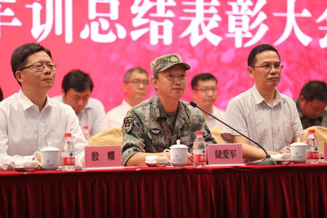 儲愛軍代表承訓部隊對軍訓工作取得完滿成功表示熱烈祝賀,對全體參訓學生的成長、進步表示充分肯定,向始終關心軍民共建,高度重視軍訓工作的學校黨委領導、全體教職工表示誠摯的敬意。他回顧了參訓以來同學們刻苦訓練的過程,通過軍事訓練、國防教育、團隊協塑造了一支紀律嚴明、軍姿挺拔的隊伍,涵養了同學們的愛國情懷和高尚情操。他希望同學們能夠像軍人一樣錚錚鐵骨、朗朗硬氣,以良好的精神面貌和意志品質勇敢面對、攻堅克難,始終自強自立、昂揚向上,為建設中華民族偉大復興的中國夢而努力奮斗。