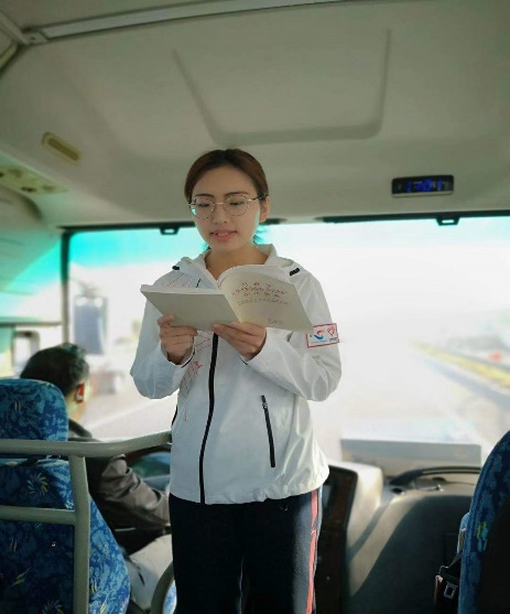 從11月1日到11月10日,“班車微黨課”從“愛黨愛國”、“初心使命”、“理想信念”、“志愿精神”、“年輕力量”、“發展”、“溫暖”、“擔當”、“奮斗”、“感恩”等十個主題開展教育活動。在學習過程中,黨員師生帶領志愿者們一起唱紅歌,重溫《習近平總書記在紀念五四運動100周年大會上的重要講話》以及習近平總書記給志愿者的四封回信,同時創新形式、以比促學,開展知識競賽、學習搶答等活動持續激發志愿者的學習熱情,勉勵同學們發揚五四精神、志愿者精神,以自己的實際行動踐行作為一名志愿者的初心與使命。在黨員師生的感染下,兩屆進博會志愿者孫浩揚、志愿者代表嚴文雯等同學踴躍發言,結合“青年大學習”以及親身經歷,闡述新時代青年對于初心使命、志愿精神的理解。