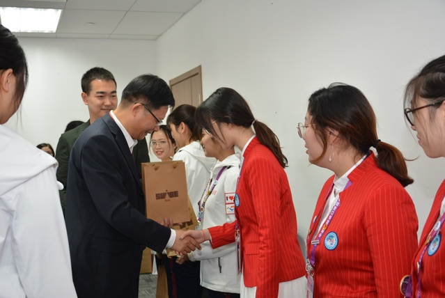 學(xué)校領(lǐng)導(dǎo)一行首先來到注冊嘉賓接待組志愿者辦公室慰問我校的志愿者們,向同學(xué)們贈送了學(xué)校帆布包、小葉子筆記本、彩虹筆等禮物組成的大禮包,鼓勵志愿者們承載學(xué)校榮耀,投入工作、用心服務(wù),繼續(xù)以良好的心理素質(zhì)、過硬的服務(wù)技能、一流的服務(wù)水平和熱情的服務(wù)態(tài)度完成好本次志愿服務(wù)工作。