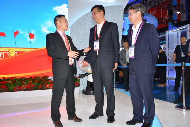 隨后,校領(lǐng)導(dǎo)一行來到進(jìn)博會中國館會見商務(wù)部外貿(mào)發(fā)展局局長、我校85級經(jīng)濟(jì)系校友吳政平。吳政平向?qū)W校領(lǐng)導(dǎo)介紹了中國國家館的布展情況,校友會秘書處秘書長溫耀慶、副秘書長晏瓊陪同參觀。