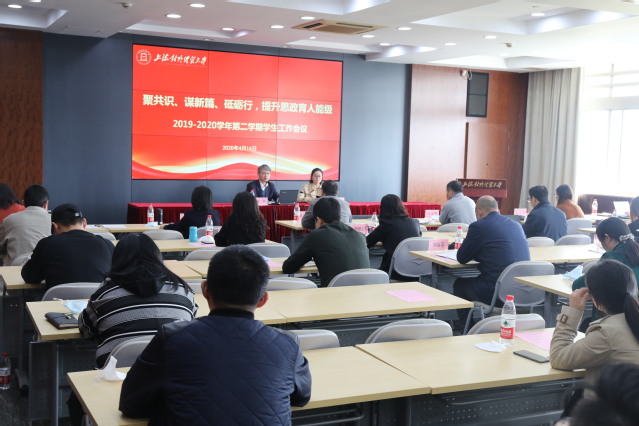 4月14日上午,主題為“聚共識、謀新篇、砥礪行,提升思政育人能級”的2019-2020學年第二學期學生工作會議在信息樓503會議室召開。校黨委副書記、副校長祁明出席,學工系統全體成員通過現場會和視頻直播兩種方式參加會議。會議由校黨委學(研)工部部長許繼亮主持。