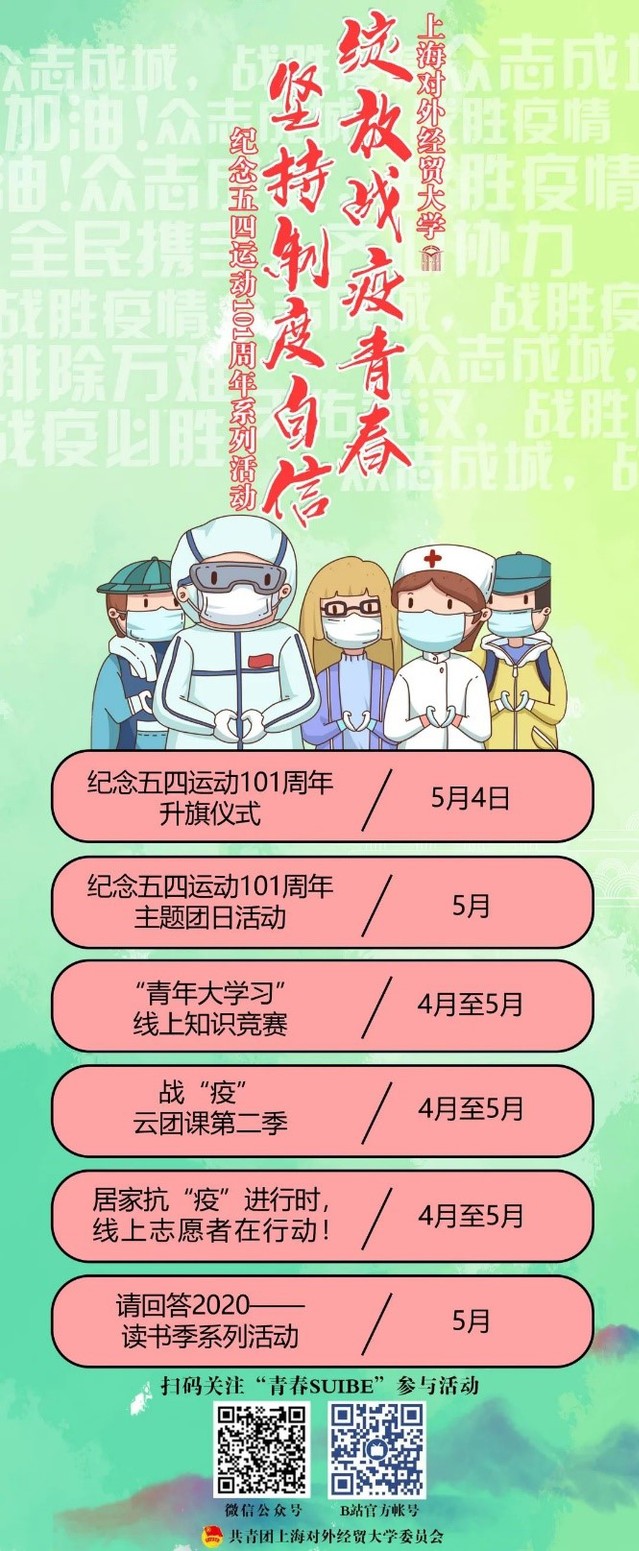 恰逢五四青年節到來之際,為激勵我校團員青年弘揚愛國主義精神、爭做向上向善好青年,同時深入學習宣傳貫徹習近平總書記關于統籌推進疫情防控和經濟社會發展工作的系列重要講話和指示批示精神,引領廣大青年教師和學生進一步堅定制度自信,在疫情期間有所作為,矢志投身新時代奪取中國特色社會主義偉大勝利的新征程,我校將在五月舉辦“五四”系列主題活動。