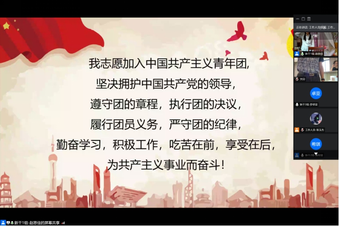 隨后,全體師生在新干1組學(xué)員、國貿(mào)1904團(tuán)支部團(tuán)支書趙思佳的帶領(lǐng)下重溫入團(tuán)誓詞,回憶入團(tuán)時的那份初心。