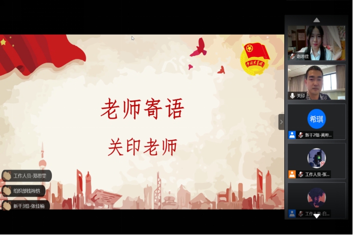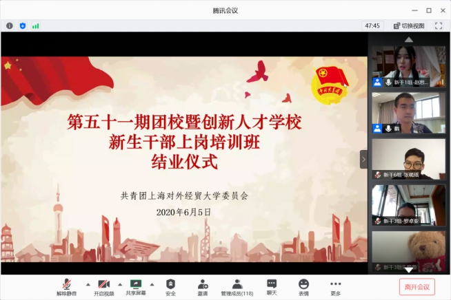 由于疫情的影響,6月5日下午,第五十一期團(tuán)校暨創(chuàng)新人才學(xué)校新生干部上崗培訓(xùn)班結(jié)業(yè)儀式以線上的方式舉行。校黨委學(xué)生工作部副部長趙靜,團(tuán)委副書記關(guān)印、司徒力云,團(tuán)委汲明悅出席儀式,一百余名新干班學(xué)員參與儀式。