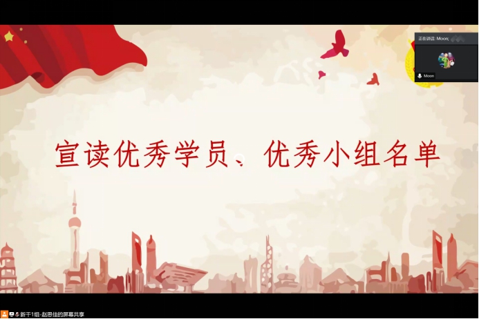 汲明悅老師宣讀了本期新干班優(yōu)秀學(xué)員及優(yōu)秀小組名單。