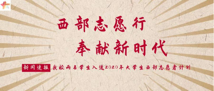 日前,我校2020年大學生西部計劃志愿者招募工作圓滿完成,來自國際商務外語學院的2020屆畢業生王添姿和張杰2名同學成功入選,并將分別赴西藏和新疆,開展為期一年的志愿服務工作,奉獻青春力量。