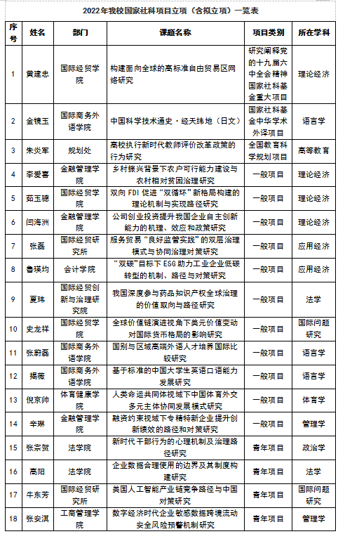 9月13日,全國哲學(xué)社會科學(xué)工作辦公室公布了2022年國家社科基金年度、青年和西部項目的擬立項名單,我校共獲得國家社科基金項目立項15項。截至目前,2022年我校國家社科基金項目共獲得立項18項,其中國家社科基金重大項目1項目、國家社科基金中華學(xué)術(shù)外譯項目1項、國家社科基金教育學(xué)項目1項。與我校往年申報情況相比,2022年國家社科基金項目無論立項數(shù)還是立項率,均為歷史最高。