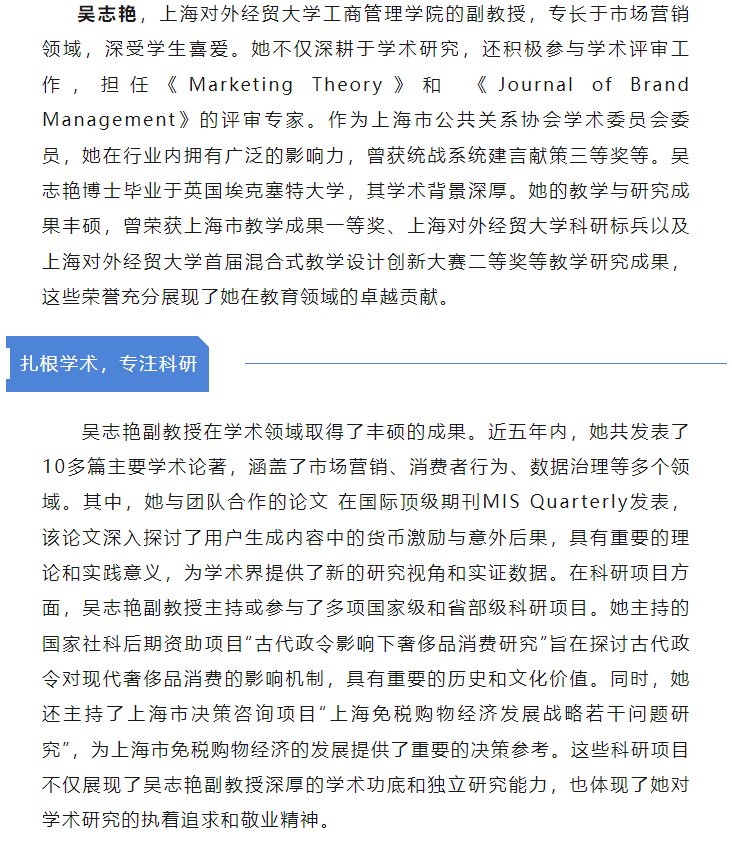 科研風采|科研永遠在路上——記2023年度上海對外經貿大學科研標兵獲得者吳志艷副教授