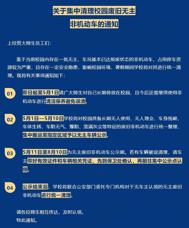 關(guān)于集中清理校園廢舊無(wú)主非機(jī)動(dòng)車的通知