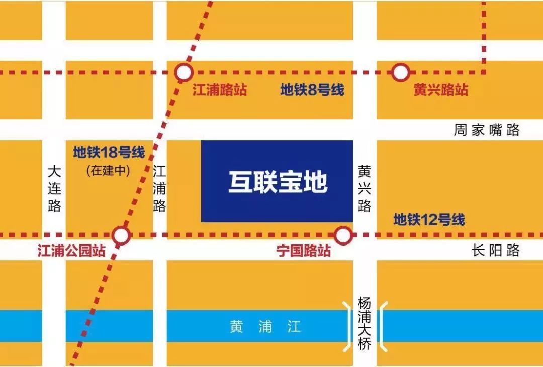 互聯寶地,位于楊浦區核心板塊,緊鄰內環楊浦大橋上匝道口及北橫通道,8號線(江浦路站、黃興路站)、12號線(寧國路站)可達。