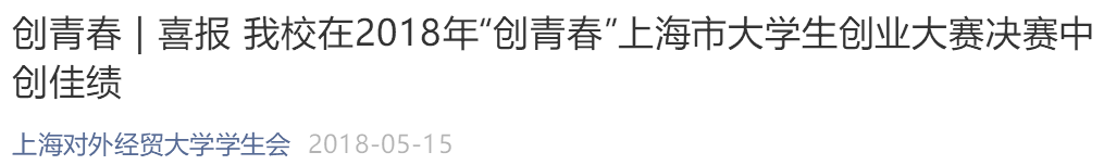 榮獲2018年“創青春”上海市大學生創業大賽市級創業計劃類銅獎