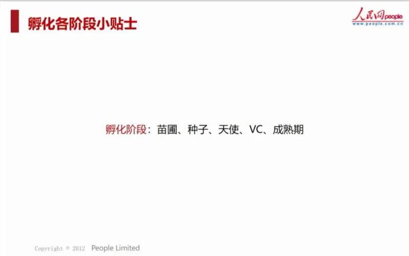 再次,薛老師在創新孵化的苗圃、種子、天使、VC、成熟期各階段都給我們提出相關建議。