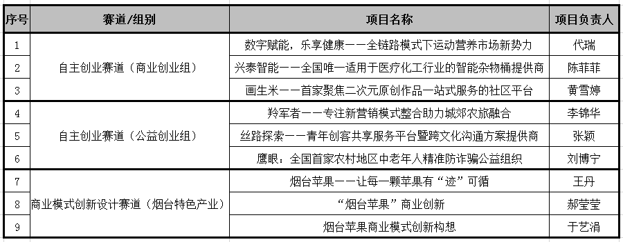 8月5日,創業學院根據全國財經院校創新創業聯盟發布的《關于舉辦第五屆全國財經院校創新創業大賽的通知》組織賽事報名。截止8月20日,共有20個項目報名參賽,經校內外專家評審,綜合考量參賽項目的創新性、商業模式可行性、可持續性、團隊情況以及社會效益,擬推薦以下項目參加復賽: