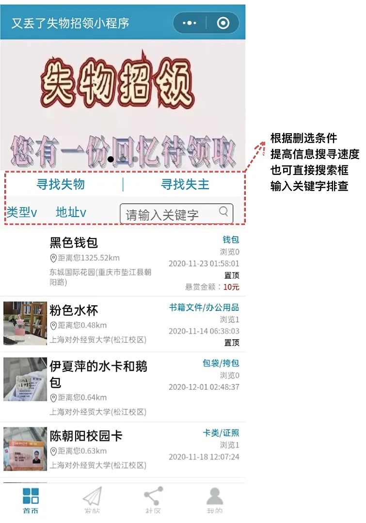 在普通的失物招領平臺的基礎上