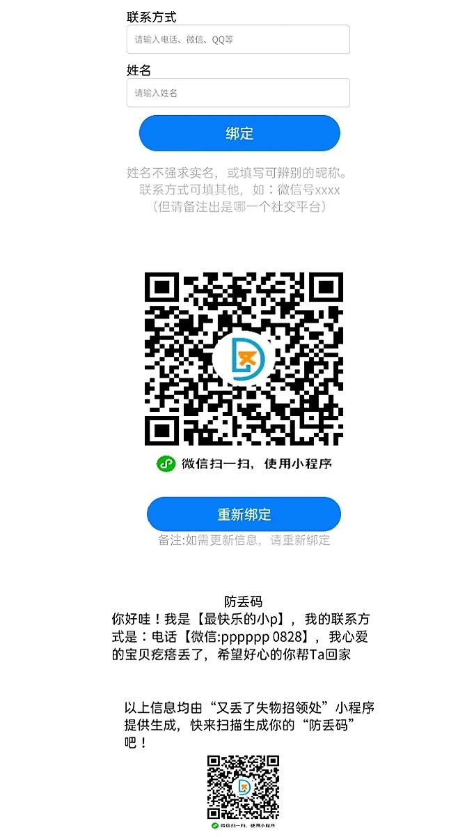 每個人都可以生成一個自己專屬的防丟二維碼