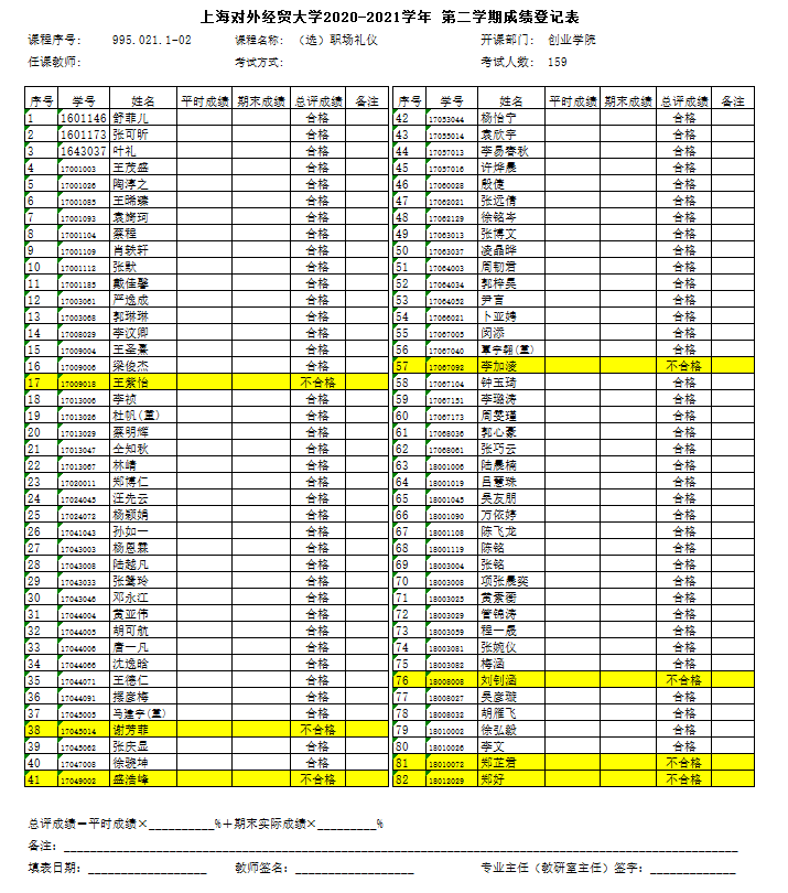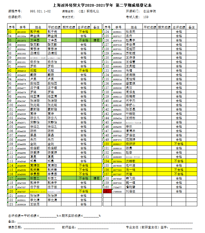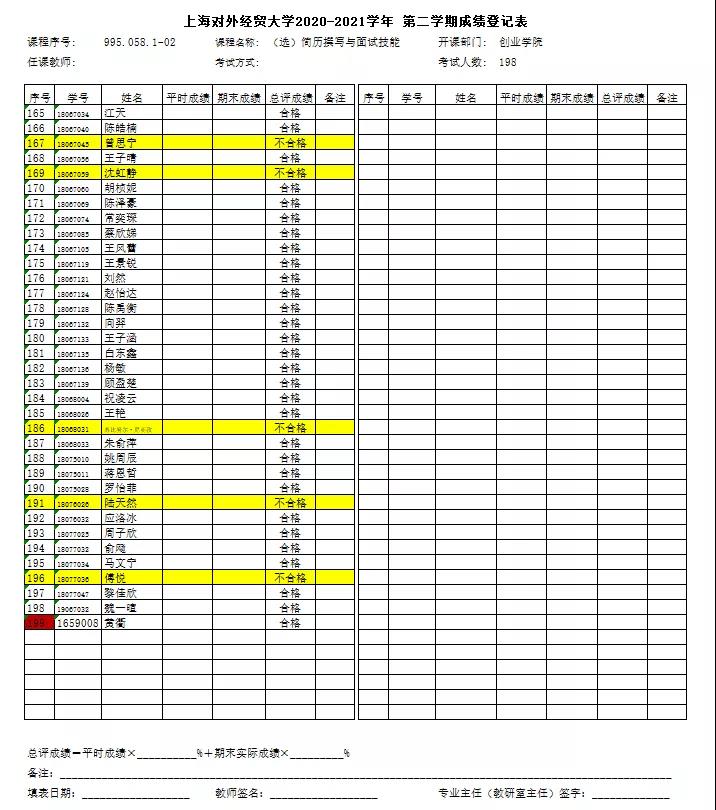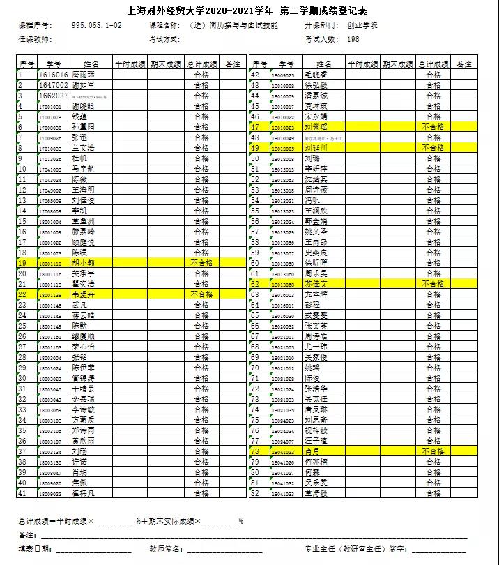 各位同學(xué),第6周周日(4月11日)的職業(yè)生涯設(shè)計(jì)課程已經(jīng)根據(jù)成績考評(píng)方案完成考評(píng),現(xiàn)公布如下。具體課程有:外資企業(yè)應(yīng)聘技能(995.010.101)、職場禮儀(995.021.102)、中國模式的繼承與創(chuàng)新(995.161.101)、簡歷撰寫與面試技能(995.058.102)、互聯(lián)網(wǎng)思維(995.145.101)。