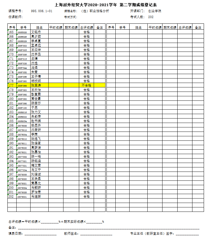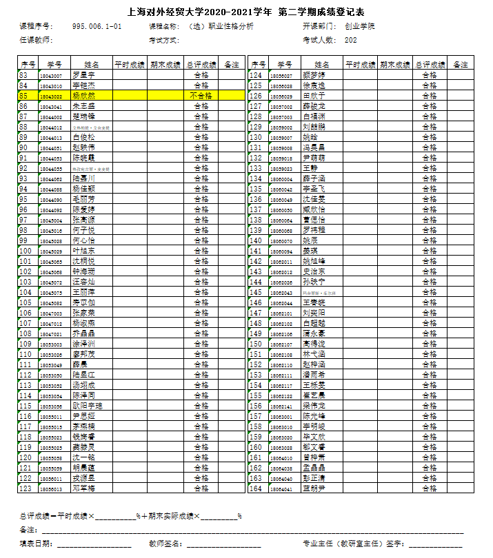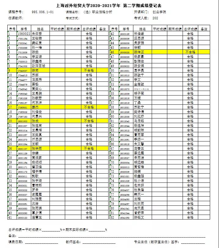 2020-2021學年第二學期第3周周日(3月21日)職業性格分析成績公布