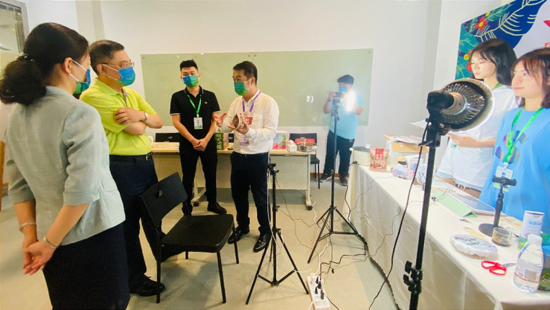 在本次主題展期間,我校國際經貿學院“一路羚先”學生實踐團隊與上海來伊份公益基金會共同發起實施了“鄉村振興從心出發”公益助農直播活動。彭沉雷一行蒞臨直播現場,詳細了解直播產品信息及活動組織細節,指出由大學生來做有關鄉村振興的公益活動是很有意義的一件事,勉勵同學們要努力把這個好項目用心堅持做下去。
