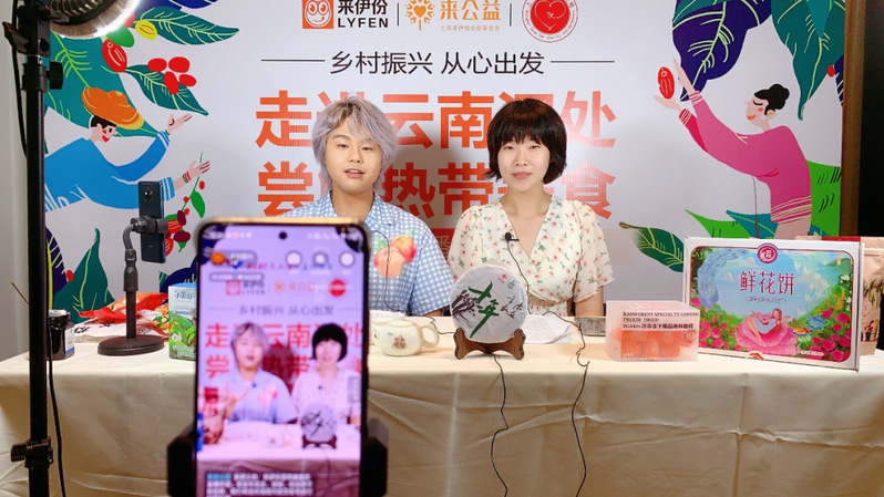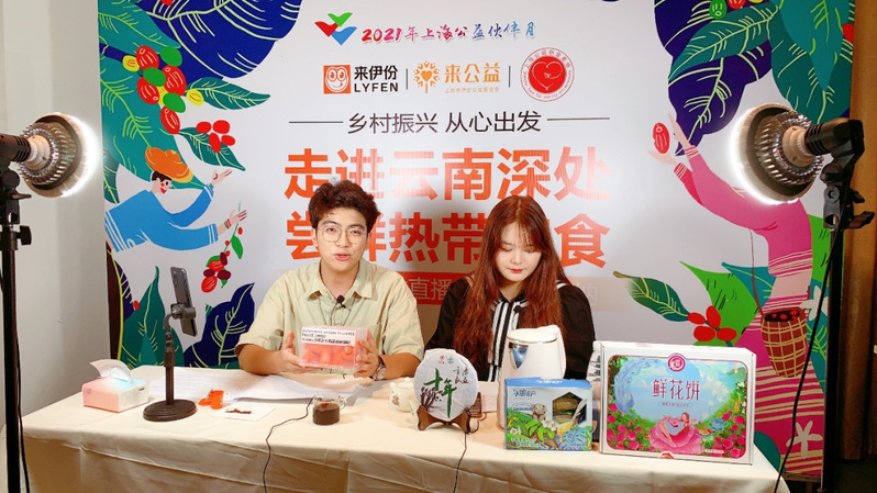 “一路羚先”項目由國際經貿學院師生2018年創建,在學校及國際經貿學院、創業學院的共同關心下,以黨建為引領,由上海市高校黨組織“攀登計劃”樣板支部黨員教師指導,以上海市新農科研究與改革實踐項目研究為支撐,知行合一,學以致用,利用學校所學專業知識服務“精準扶貧、鄉村振興”國家戰略。團隊主動對接福建、江西、貴州、云南及上海多地農村,與共建幫扶單位攜手前進,從“精準扶貧”走向“鄉村振興”。2020年5月團隊創立“三農電商直播間”,開展助農直播系列活動,一年來共直播十余次,直播帶貨各類特色農產品過百萬元,已初步成為有區域性影響的助農品牌。本次主題展期間共直播5場,場均觀看數、點贊數均過萬次,學生主播帶領觀眾走進云南深處,嘗鮮熱帶美食,用電商直播助力云南鄉村振興。