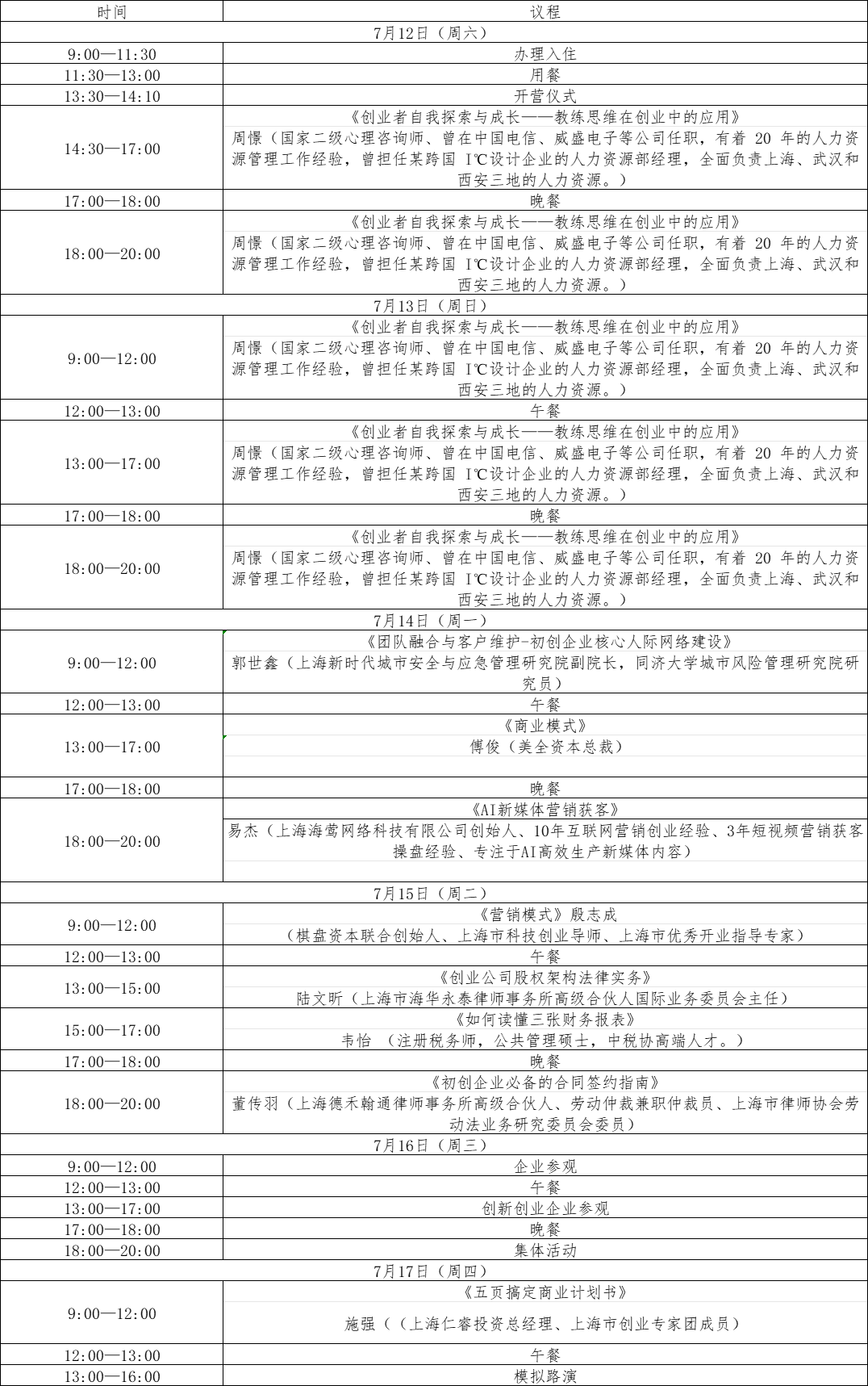 2025|創星孵化營課程表