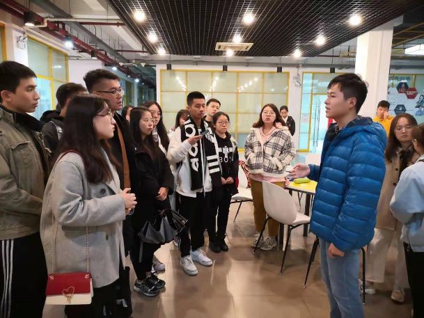 參觀完畢后,創中成員又為參觀同學介紹了創中內部的值班室,培訓室,管理模式以及創中組織與入駐公司日常聯系的途徑與方式。經過一番的講解與交流,大家逐漸拉近了距離。雙方人員開始分享交流彼此學校的相關生活事宜,氣氛和諧融洽。 快樂的時光總是短暫的,轉眼間,海關學院同學們的參觀交流活動已經接近尾聲了,最后大家分別在展示墻,創中培訓大廳前合影,記錄這短暫但卻充實的時光。