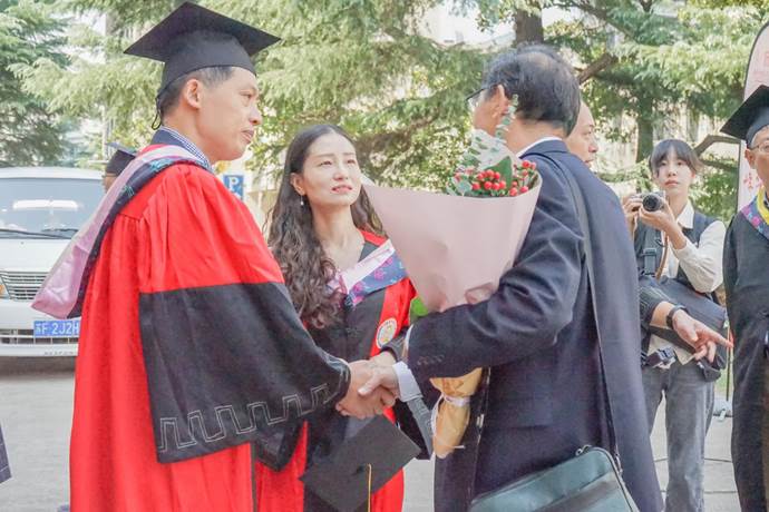 上午活動的最后,校友們紛紛換上學士服與昔日的恩師們進行合影留念。