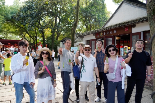 漫步南潯古鎮,鷓鴣溪畔飾以粉墻黛瓦,亭臺樓閣立于蓮池曲橋,讓人品味到“雖由人作,宛如天開”的意境。老師們踱步頔塘故道,探尋老字號故事,品茗熏豆茶,賞味定勝糕,一同聆聽“最南潯”的旋律。