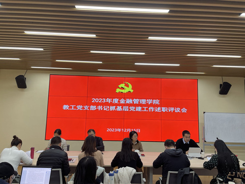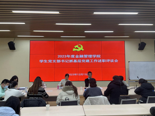 為深入學習貫徹習近平新時代中國特色社會主義思想和黨的二十大精神,根據校黨委關于基層黨組織書記抓基層黨建工作述職評議考核的總體安排,12月15日,金融管理學院黨委在圖文信息樓405會議室召開2023度基層黨支部書記抓基層黨建工現場述職評議會。學院黨委書記許繼亮、副書記關印、黨委委員應尚軍、專職組織員葛紅芳、全體黨支部書記和各支部黨員代表出席會議。