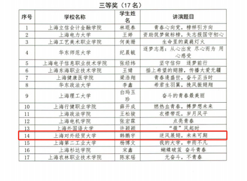 學院團委書記關文博作品《相信光的力量》從全市各行各業近100個演講作品中脫穎而出,作為唯一一名高校基層團干部代表進入演講活動現場展示環節,并最終獲評“優勝演講者”。