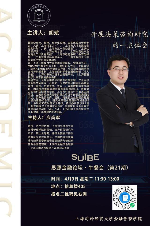 【SUIBE思源金融論壇——午餐會第21期】開展決策咨詢研究的一點體會