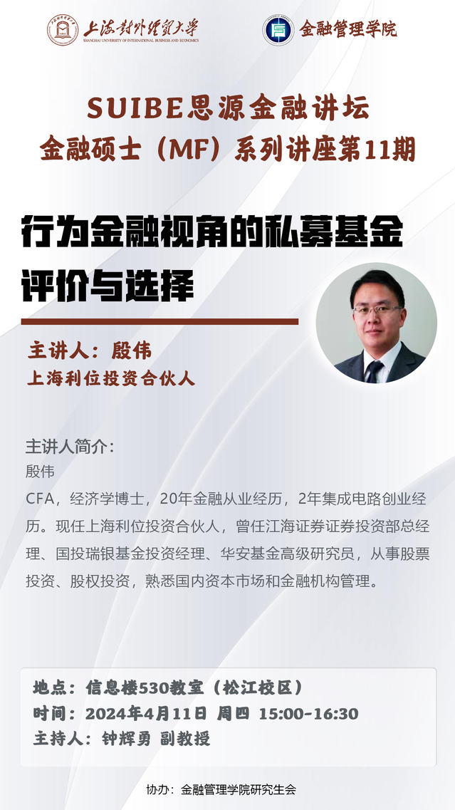 【SUIBE思源金融論壇——金融碩士(MF)系列講座第11期】行為金融視角的私募基金評價與選擇