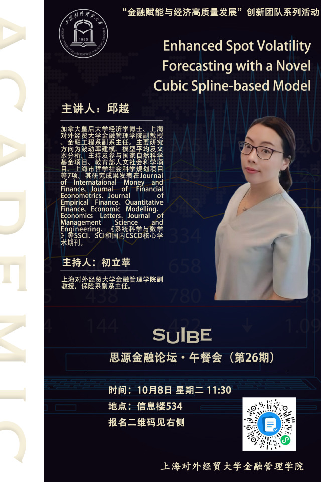 【SUIBE思源金融論壇——午餐會第26期】Enhanced Spot Volatility Forecasting with a Novel Cubic Spline-based Model