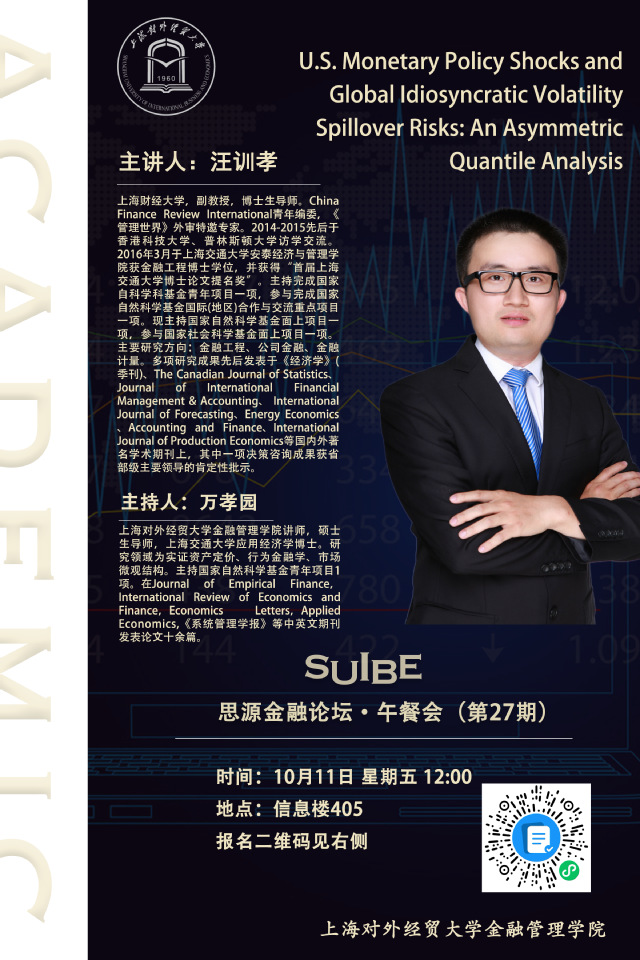 【SUIBE思源金融論壇——午餐會第27期】U.S. Monetary Policy Shocks and Global Idiosyncratic Volatility Spillover Risks: An Asymmetric Quantile Analysis