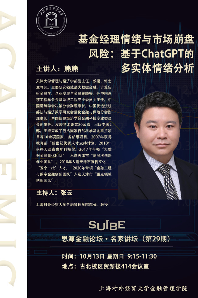 【SUIBE思源金融論壇——名家講壇第29期】基金經理情緒與市場崩盤風險:基于ChatGPT的多實體情緒分析