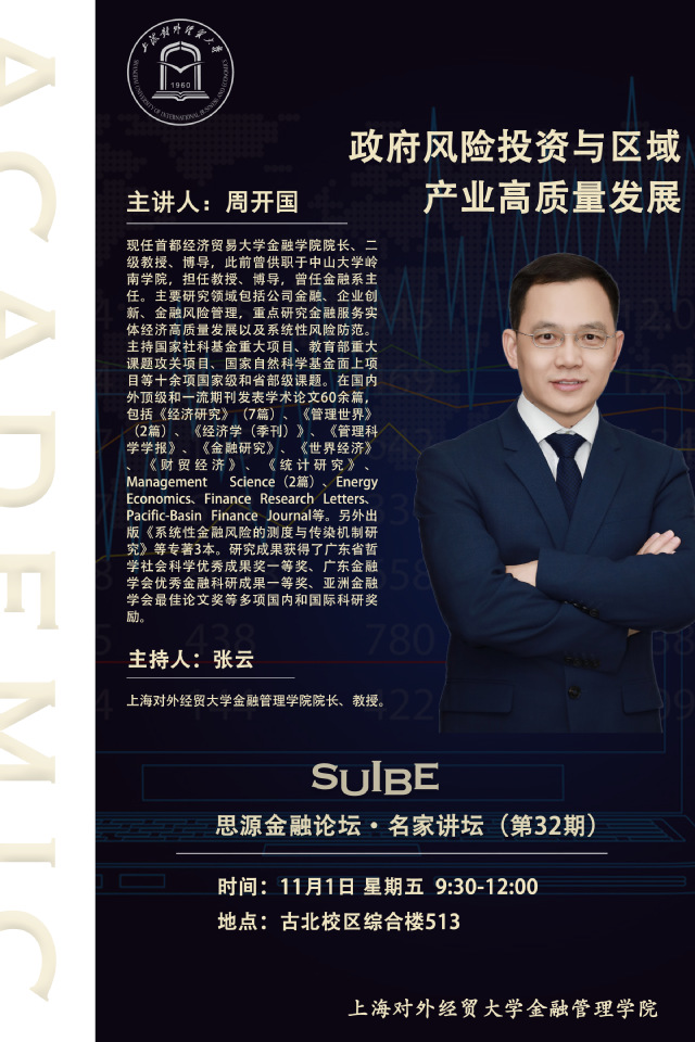【SUIBE思源金融論壇——名家講壇第32期】政府風險投資與區域產業高質量發展