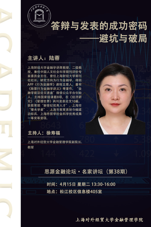 【SUIBE思源金融論壇——名家講壇第38期】答辯與發表的成功密碼——避坑與破局