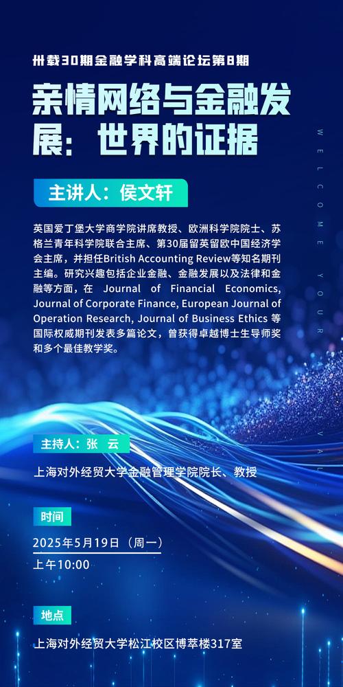 【卅載30期金融學科高端論壇丨第8期】侯文軒 親情網絡與金融發展:世界的證據