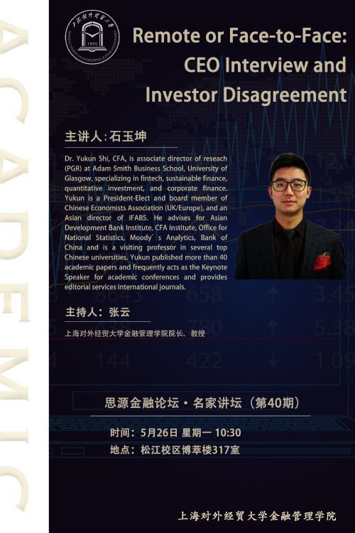 【SUIBE思源金融論壇——名家講壇第40期】Remote or Face-to-Face: CEO Interview and Investor Disagreement