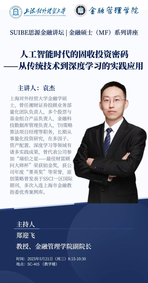 【SUIBE思源金融論壇——金融碩士(MF)系列講座第21期】人工智能時代的固收投資密碼從傳統技術到深度學習的實踐應用