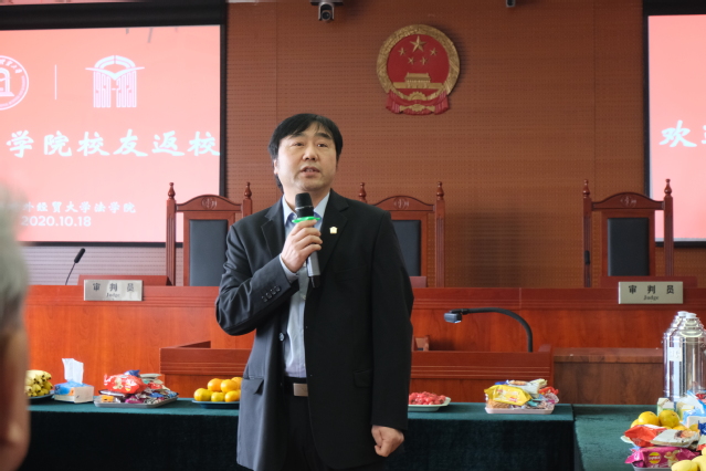 下午,法學(xué)院校友齊聚一堂,在上海對外經(jīng)貿(mào)大學(xué)松江校區(qū)信息樓513模擬法庭舉行了60周年校慶—法學(xué)院校友返校活動暨校友座談會。