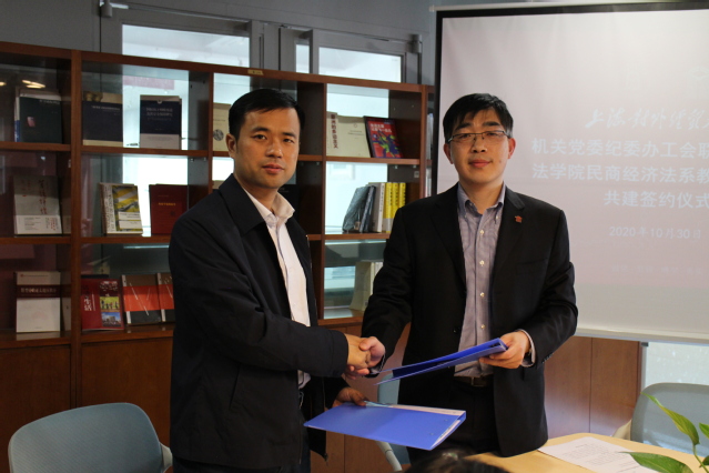 2020年10月30日中午,機關黨委紀委辦與工會聯合黨支部和法學院民商經濟法學系教工黨支部在鐘書閣黨建活動室舉行支部合作共建活動,校黨委副書記、紀委書記許玫,機關黨委副書記毛丹玲,法學院黨委副書記陳雪,紀委辦與工會聯合黨支部書記唐旭生,民商經濟法學系教工黨支部書記王誠,共建支部全體黨員參加活動。