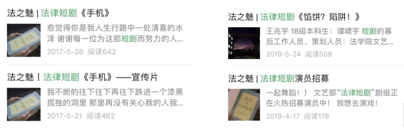 法律短劇是以社會主義核心價值觀為引領(lǐng)并結(jié)合“道德”與“法制”,通過學(xué)生自撰劇本、獨(dú)立攝制、親身表演打造的法律情景劇。從前期的劇本創(chuàng)作、演員招募到后期的拍攝制作、宣傳播放,通過生動、真實的法律故事使表演者在表演的情境中體驗道德和法制的精髓,使觀看者在觀看中學(xué)習(xí)法律知識,進(jìn)一步加強(qiáng)學(xué)生的校園道德和法制教育。貼合大學(xué)生校園生活,專業(yè)性與趣味性兼?zhèn)?,平臺播放量可觀,法律短劇已成為同學(xué)們知法、學(xué)法、用法的重要幫手。