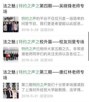 交流與線上宣傳展示相結(jié)合的訪談類活動。該活動的交流話題包括時事熱點(diǎn)、熱門事件中的法律問題、學(xué)術(shù)性法律問題等等,將學(xué)術(shù)討論與實踐法律問題相結(jié)合,具體通過前期的話題討論以及問題征集、嘉賓對于專門主題的探討以及問題的答疑,致力于為師生搭建課外交流平臺,以輕松活躍的氛圍和形式引導(dǎo)同學(xué)關(guān)注并正確理解社會熱點(diǎn)問題。通過與老師、校友的別開生面的交流,同學(xué)們接觸了更多知識的實際應(yīng)用,拉近了師生距離,收獲了師生、校友的一致好評。