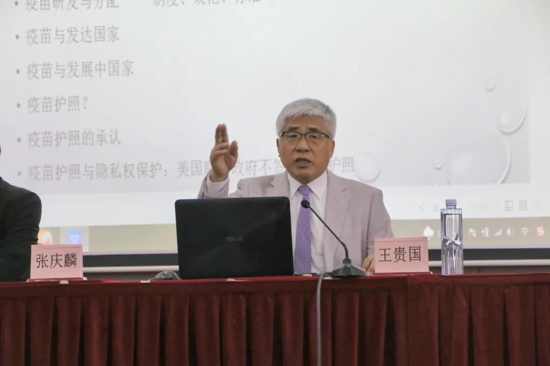 2021年4月16日上午10時,法學院專業講座“人類健康與國際法——從疫苗護照說起”,在信息樓526順利舉行。浙江大學國際戰略與法律研究院院長王貴國教授作為主講人,上海對外經貿大學法學院院長張慶麟教授作為主持人出席會議。