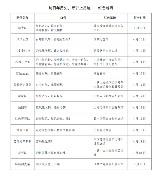 為迎接中國共產黨建黨100周年,學院黨委組織各學生黨支部共同開展“共繪百年”系列活動。其中,“訪百年歷史,尋滬上足跡”——紅色越野活動,旨在重溫革命歷史,體悟革命精神,引導廣大黨員及青年學生懷敬畏之意,感先驅之行,慨為民之志,慷紅色之心。