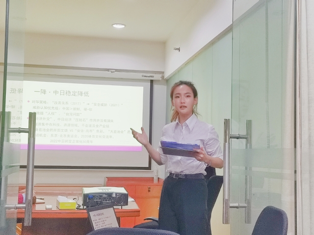 會(huì)上,楊文輝同學(xué)以《選后日本在外交和安保領(lǐng)域或出現(xiàn)2降2增》為主題進(jìn)行匯報(bào),基于自身的學(xué)習(xí)和研究分析了日本自由民主黨總裁選舉及眾議院選舉之后,日本政府在外交和安全保障領(lǐng)域或出現(xiàn)“中日穩(wěn)定降低、支出效用降低;進(jìn)攻性增強(qiáng)、自主性增強(qiáng)”的趨勢(shì)。作為與會(huì)的唯一一名本科生,楊文輝同學(xué)的發(fā)言得到吳寄南等各位專家學(xué)者的認(rèn)可。自由討論環(huán)節(jié),楊文輝同學(xué)與專家學(xué)者進(jìn)行了熱烈討論和深入交流,展現(xiàn)了我院學(xué)子的學(xué)術(shù)素養(yǎng)與精神面貌。