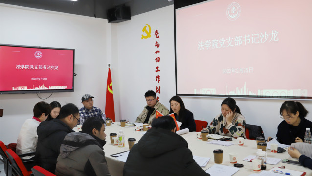 2月25日下午,法學院黨委在學校黨建服務中心召開新學期首期支部書記沙龍,黨支部書記、黨委組織員參與沙龍,共同探討交流新學期黨建工作。沙龍由學院黨委書記黃靜主持。