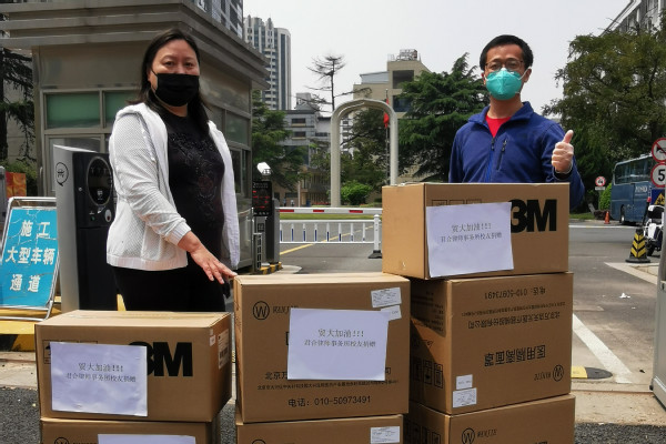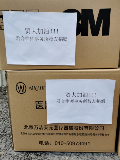 4月19日,兩輛貨車載著3000套大白防護服和防疫面罩,3500個N95口罩分送至我校松江校區和古北校區,帶來了君合律師事務所6位校友合伙人對母校師生的牽掛和關愛。